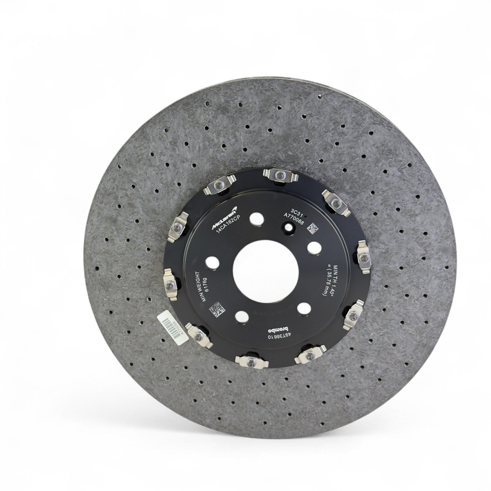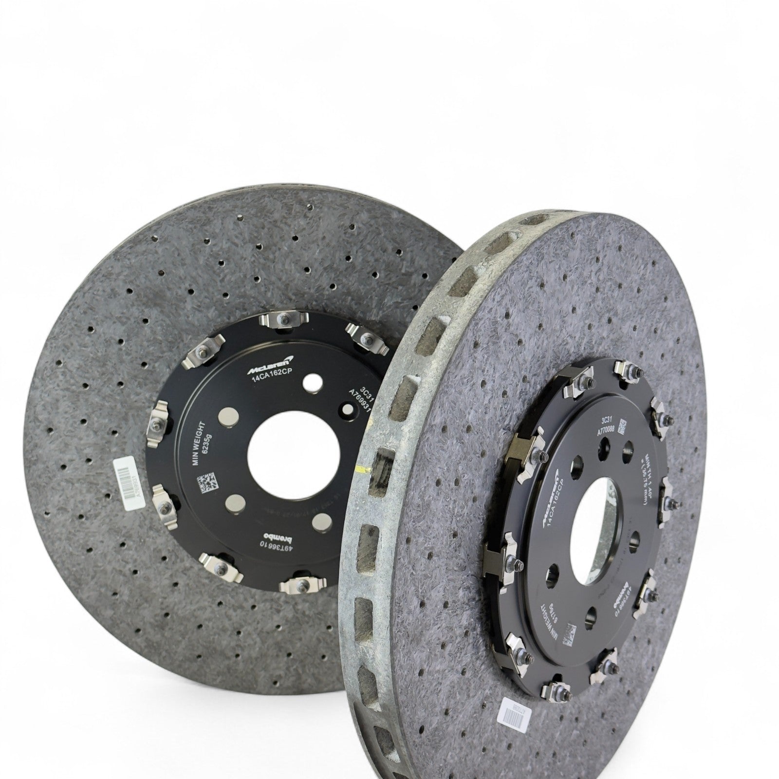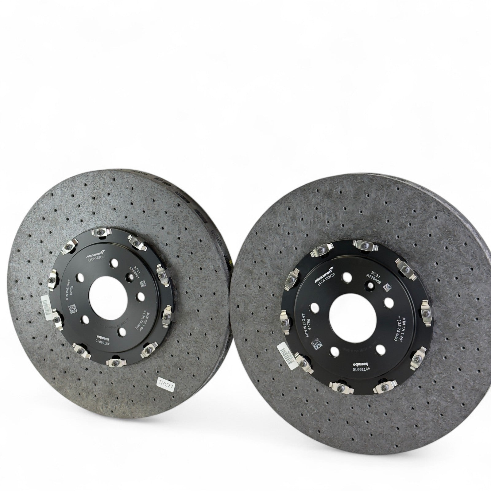 Fabrycznie nowe, oryginalne przednie tarcze ceramiczne McLaren, pasujące do podanych modeli. Produkt oryginalny, nie regenerowany. Jedna tarcza posiada uszczerbienie z przodu.