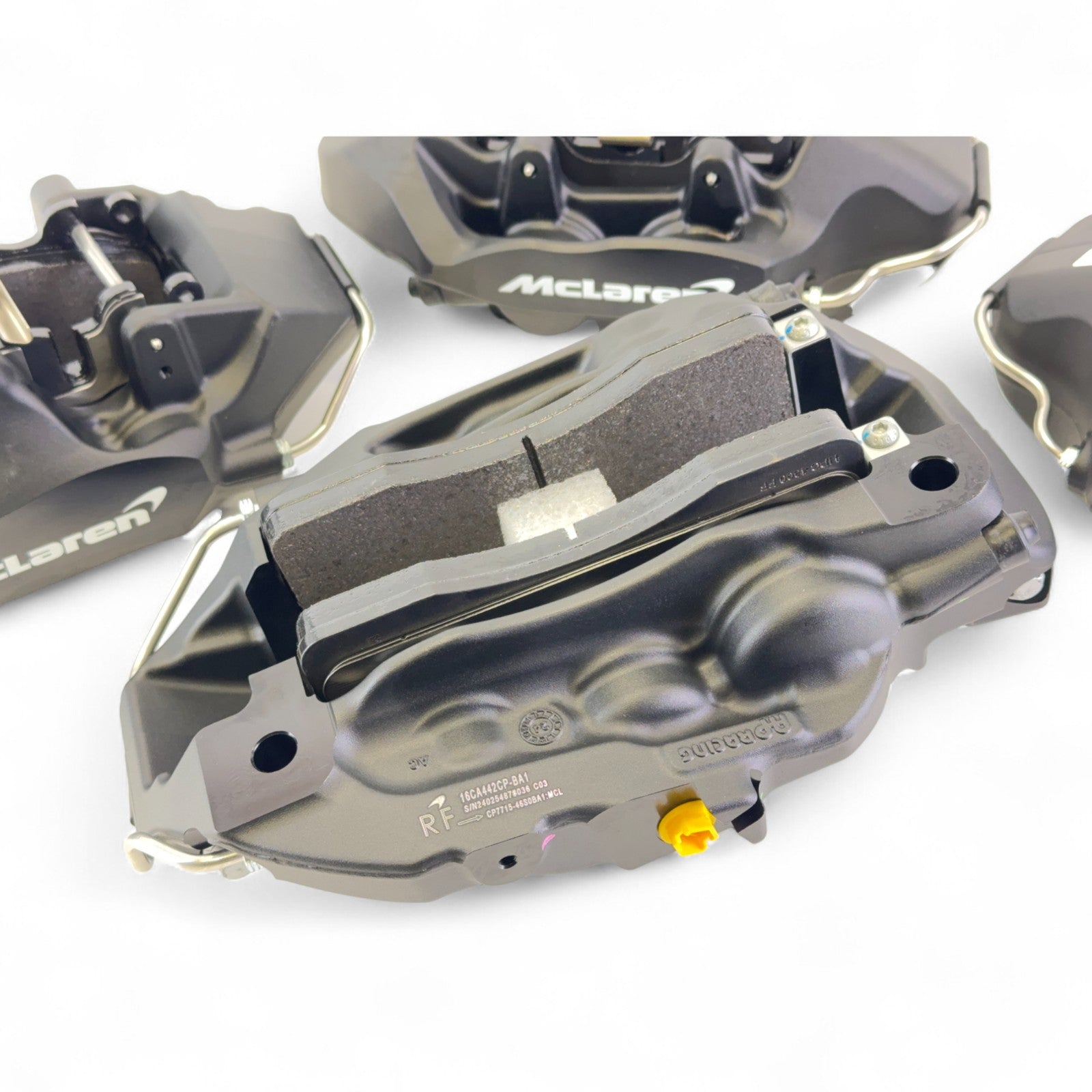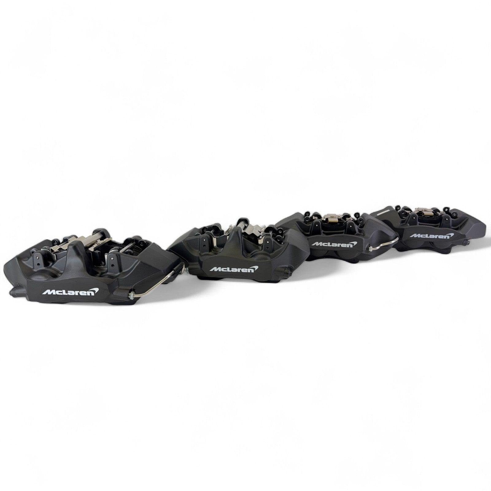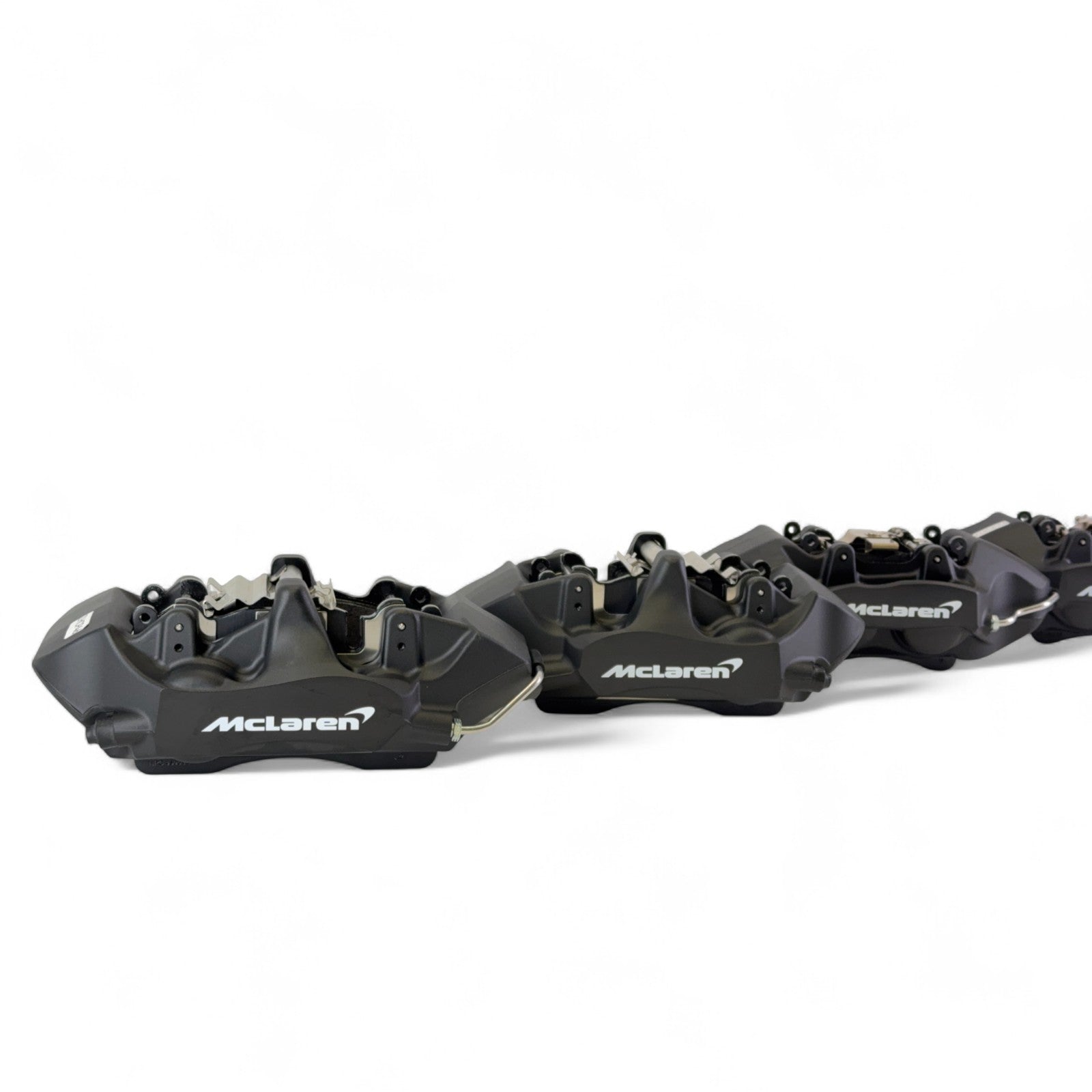 Fabrycznie nowy komplet 4 sztuk zacisków hamulcowych wraz z klockami, przeznaczony dla samochodów marki McLaren, do aut wyposażonych w tarcze ceramiczne. Pasujące do podanych modeli. Produkt oryginalny, fabrycznie nowy w oryginalnym opakowaniu.
